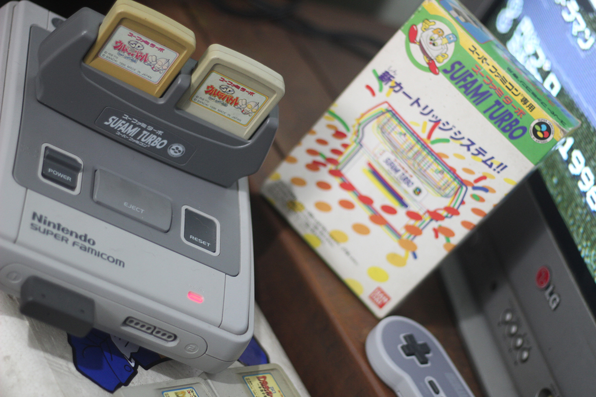 Os cartuchos do SuFami Turbo são menores que os de Super Famicom e para jogá-los basta colocar o jogo no primeiro slot e acoplar o acessório o video game.